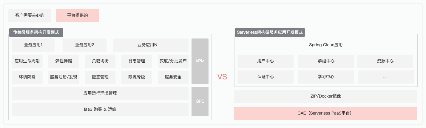 免运维:CAE 能够免运维底层基础设施,例如 IaaS、K8s、微服务组件和 APM 组件等,无需自建注册中心,极大降低开发运维成本。