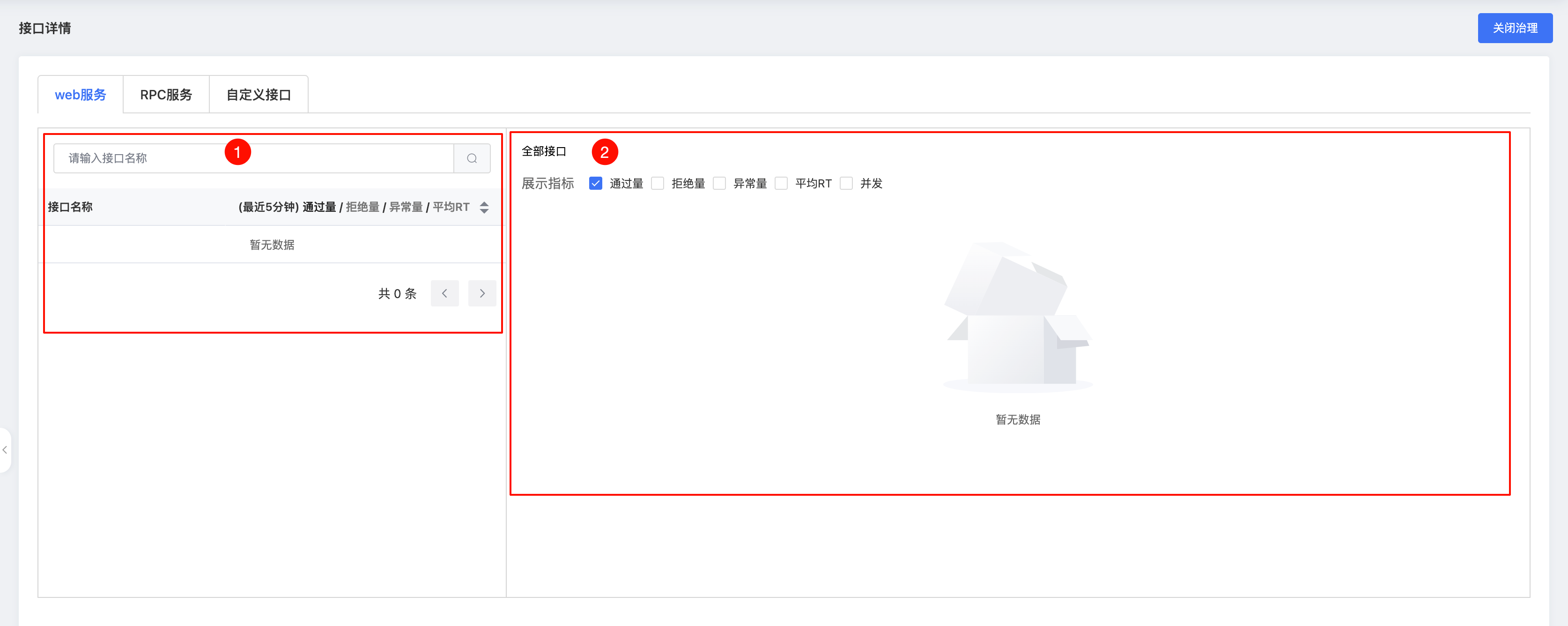(图标②)默认全部接口页签下,展示相关的指标信息。