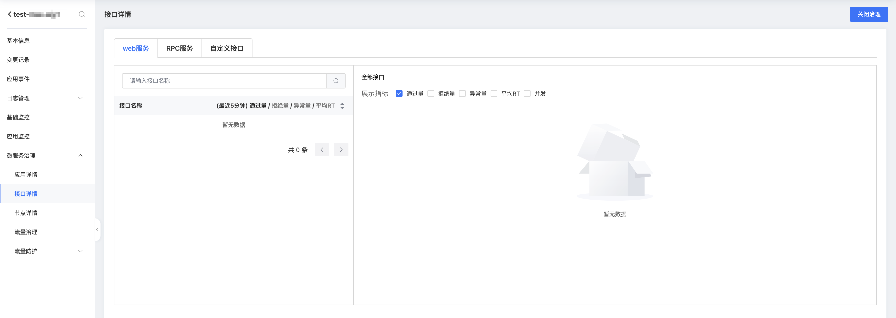 在左侧导航栏,选择微服务治理 > 接口详情。