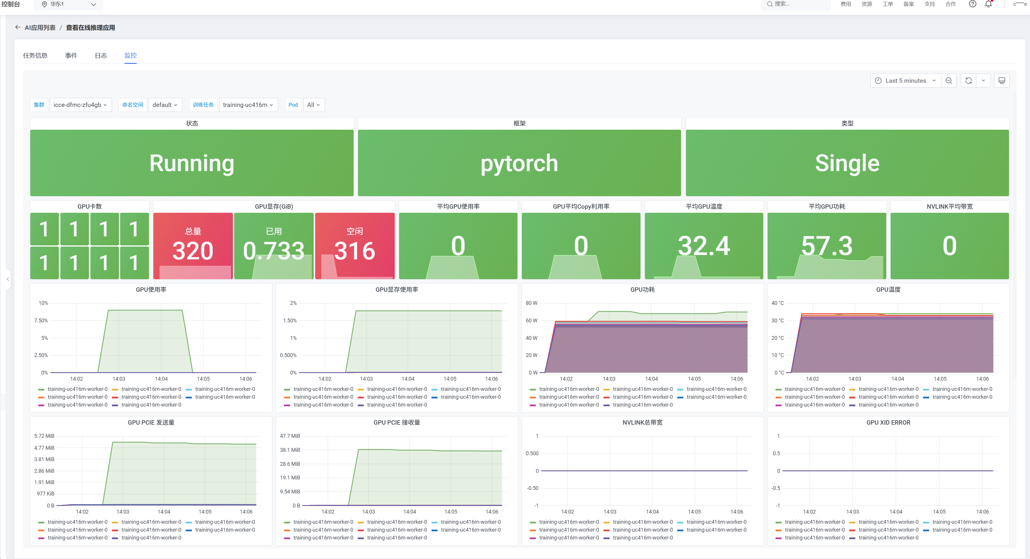 单击训练任务,查看训练任务事件、日志输出以及监控。