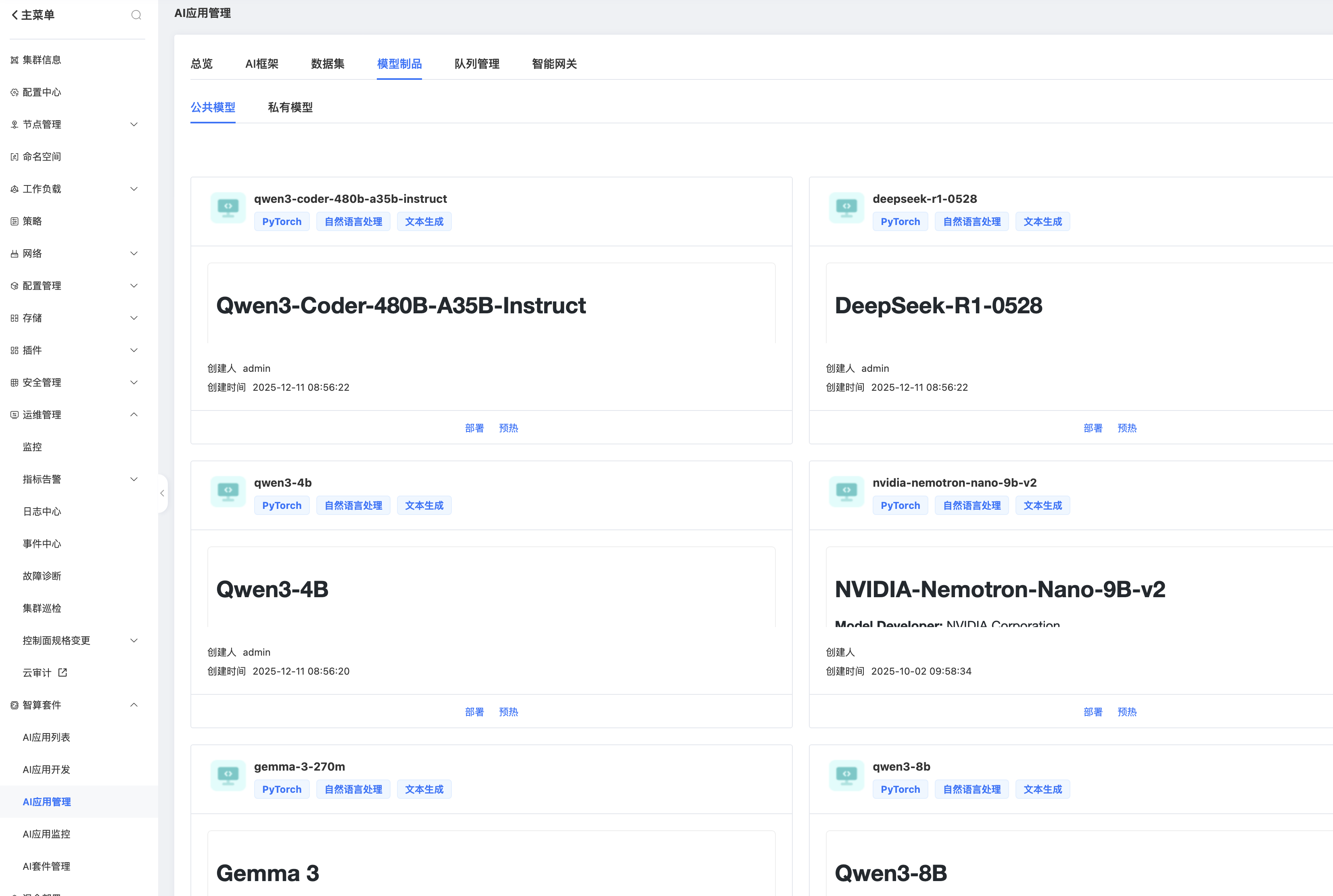一、进入 智算套件 - AI应用管理 - 模型制品 - 公共模型