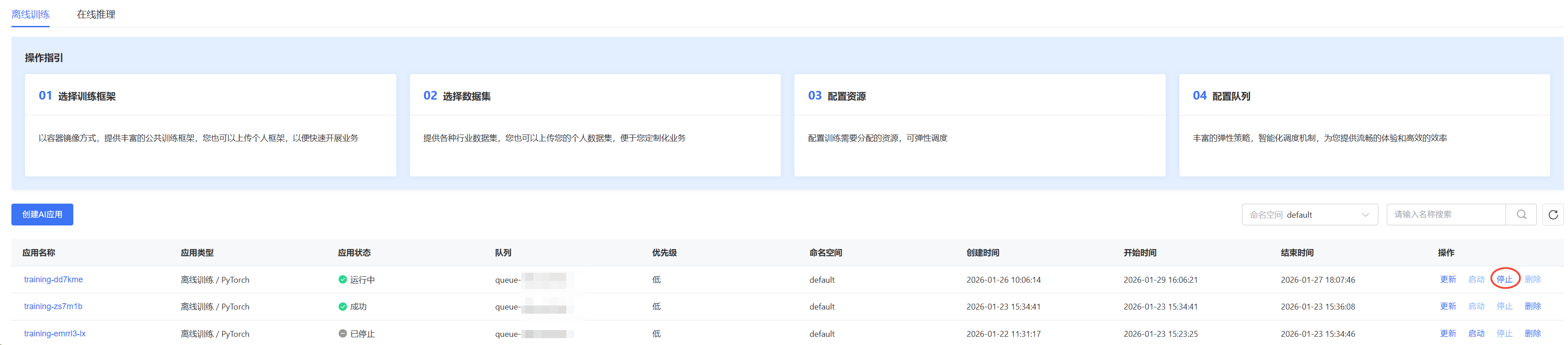 | 运行中 | 训练任务已创建完成并正常运行 |