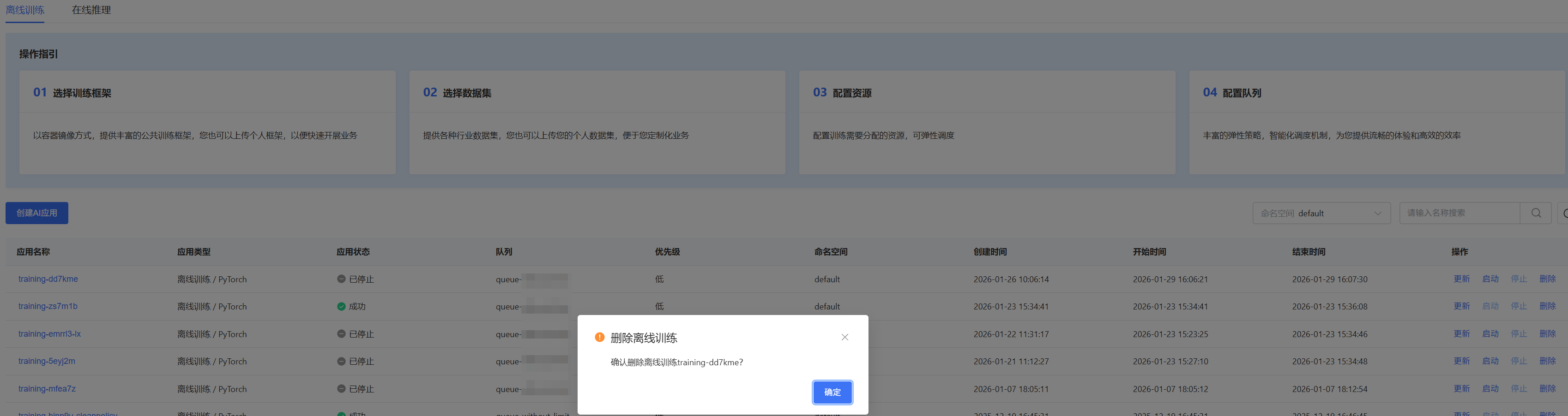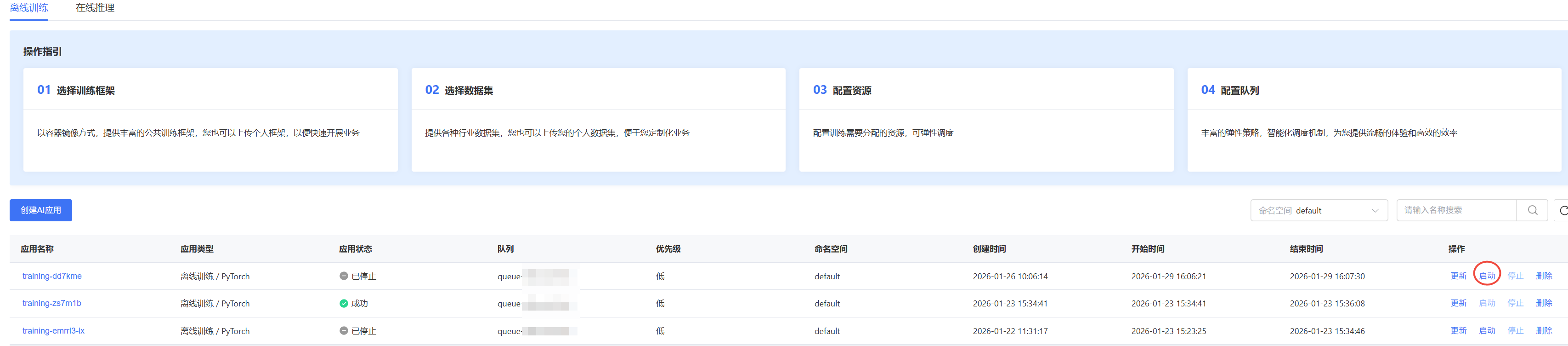 | 已创建 | 训练任务已提交 |