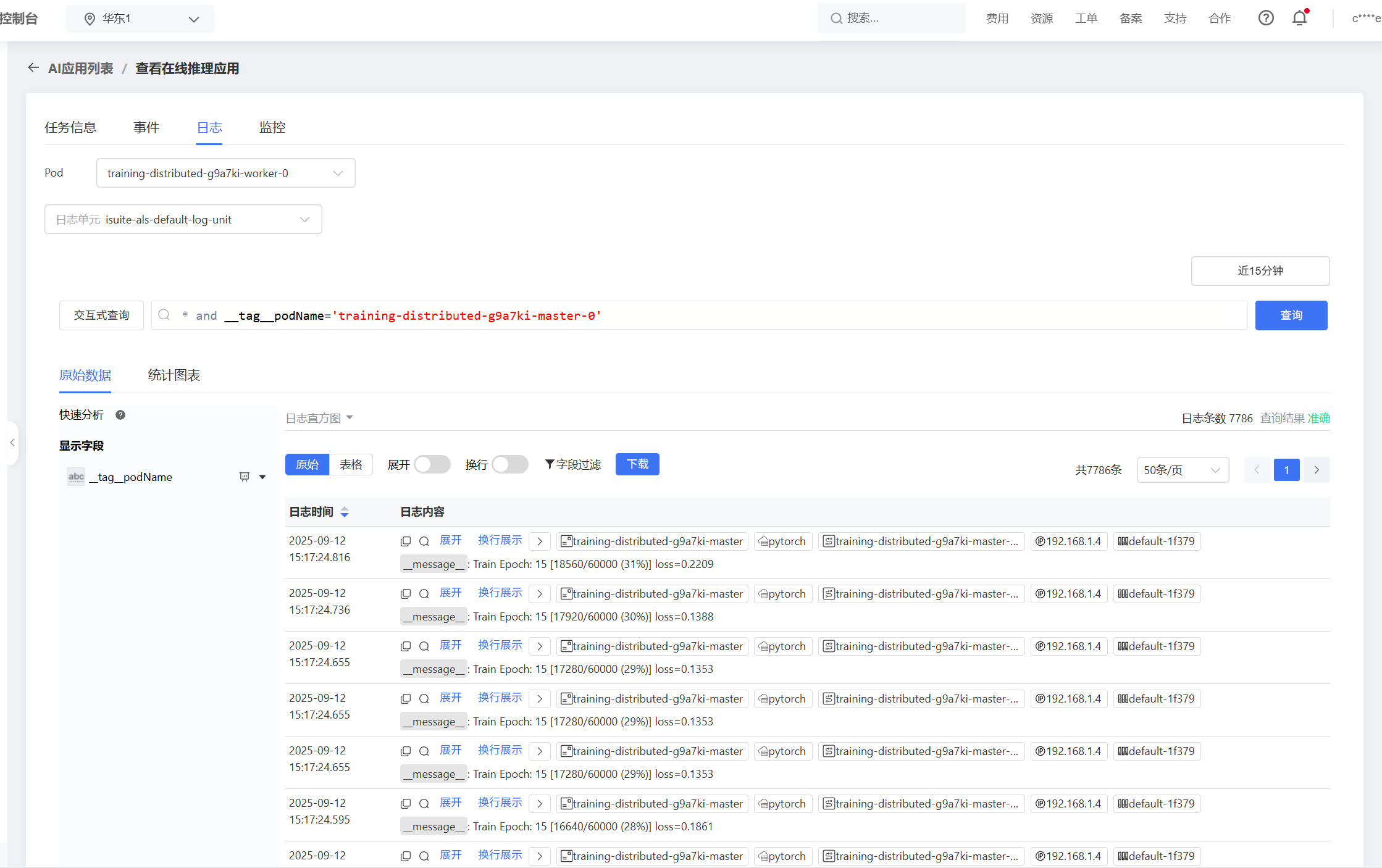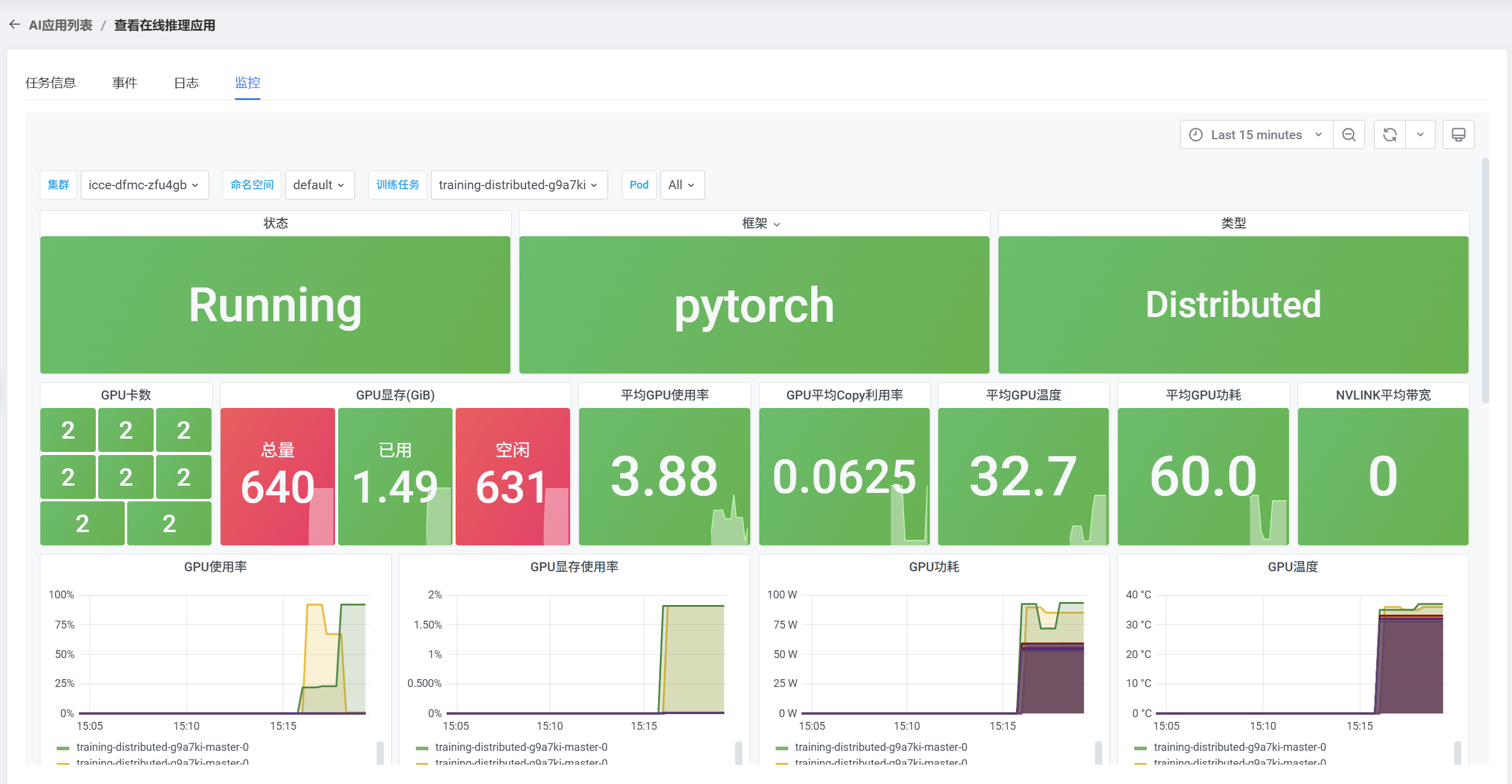 1. 待训练任务状态变为“运行中”时进入训练任务详情页查看对应的日志和监控