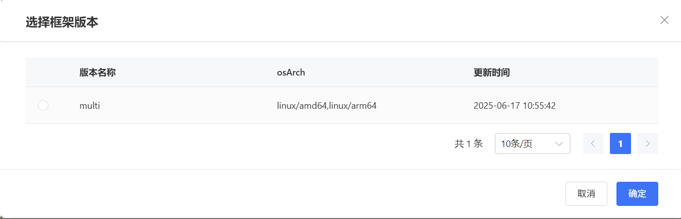 5. 选择框架镜像版本,如下所示此演示镜像支持多架构
