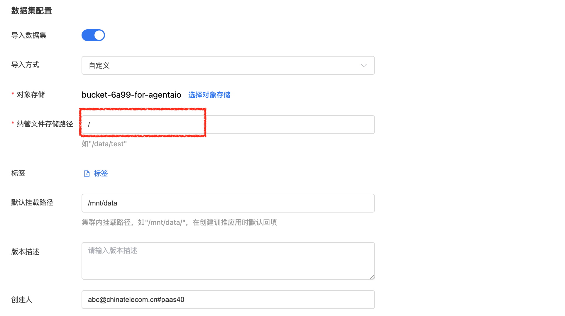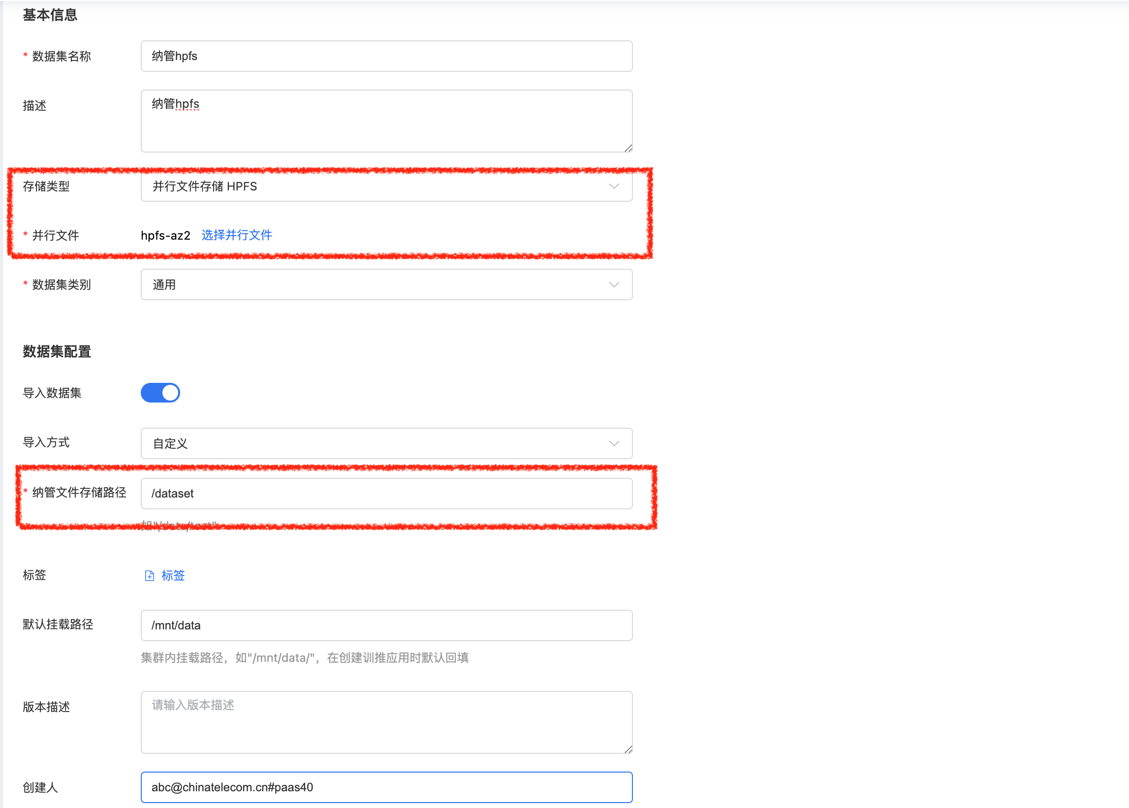 自定义数据集即纳管数据集,支持将已有数据(对象存储或并行文件)进行纳管。