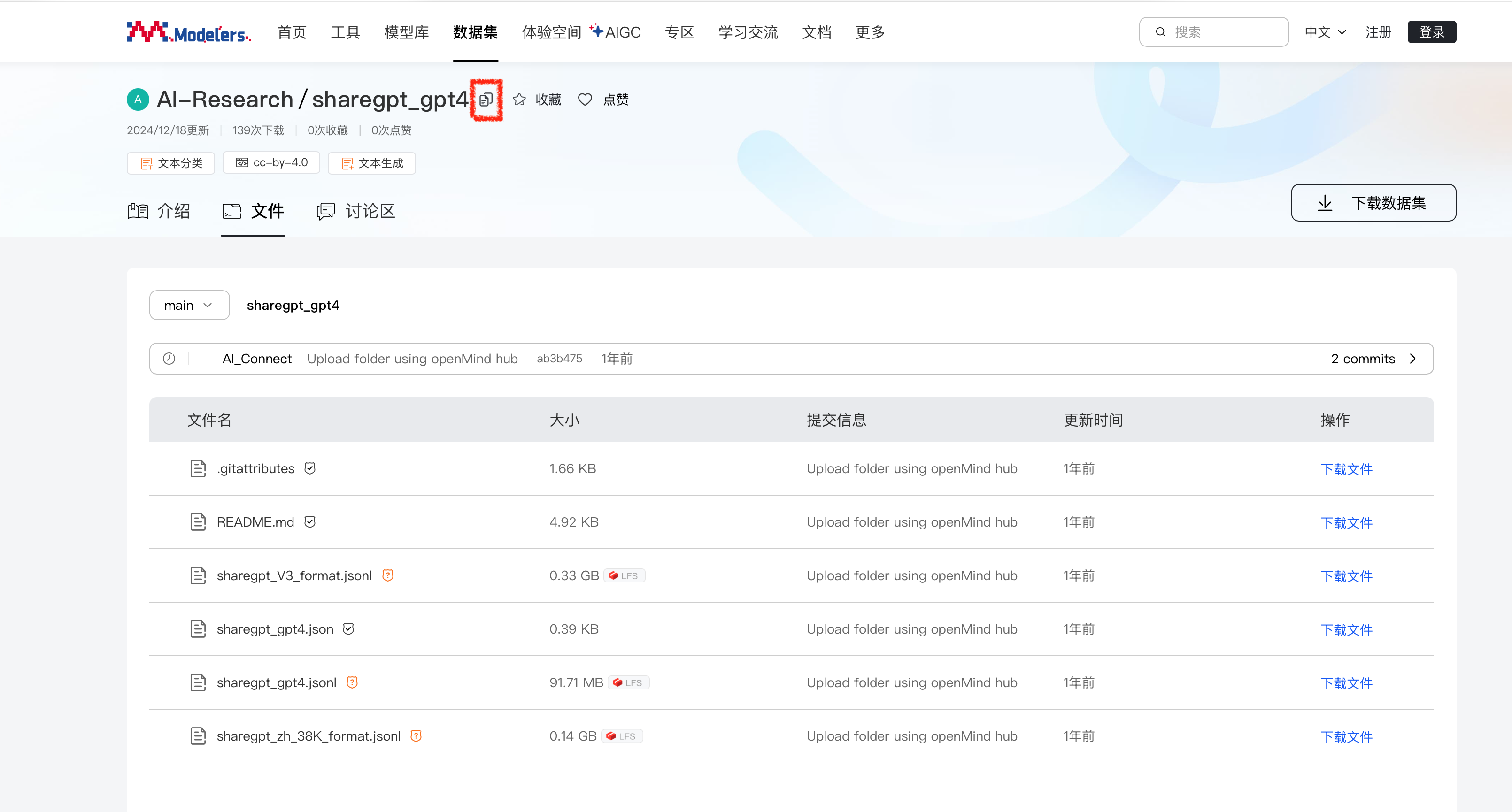 1、在魔乐社区官网复制需要导入的数据集名称