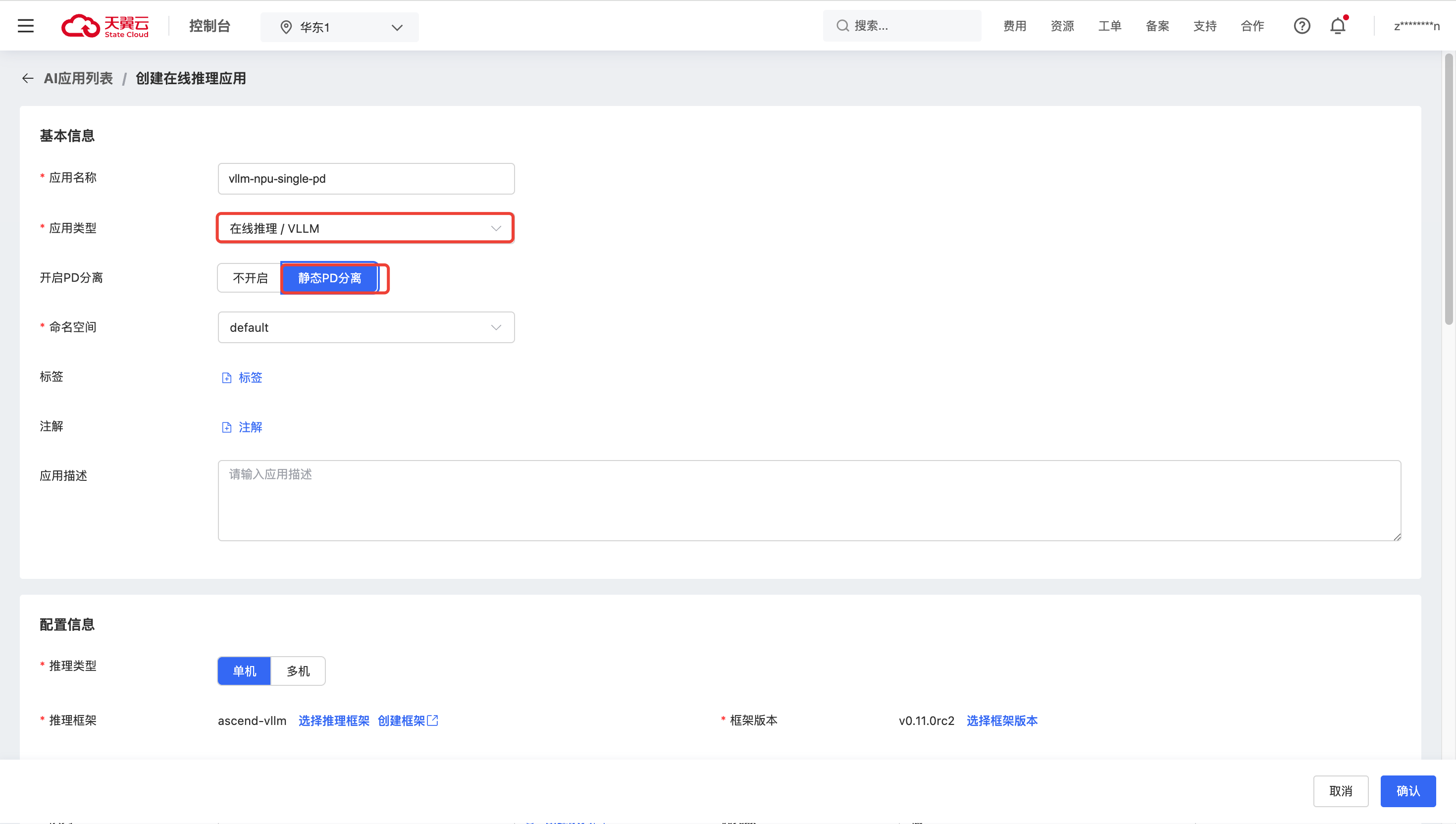 本节介绍如何 创建vLLM NPU单机PD分离任务。