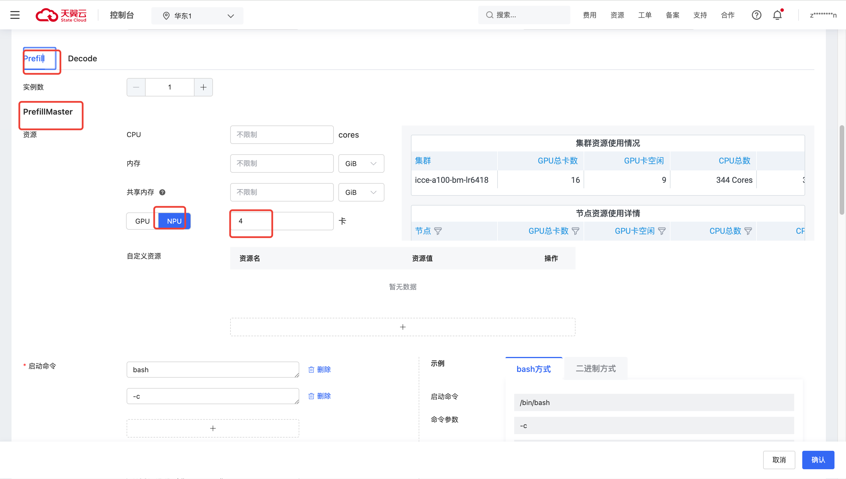 Prefill 菜单中的 PrefillMaster, PrefillWorker 中的资源都要填 NPU。