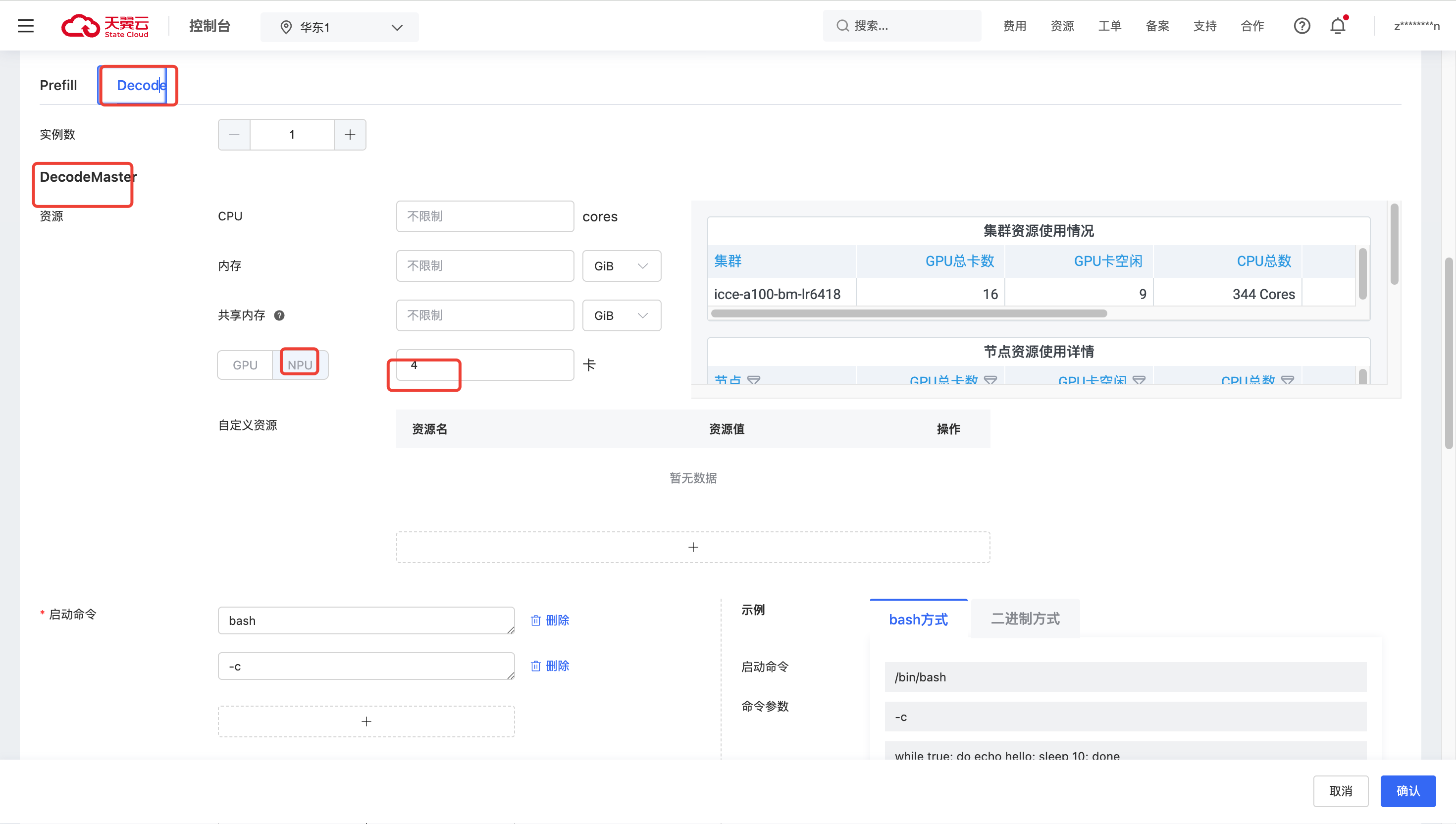 Decode 菜单中的 DecodeMaster,DecodeWorker 中的资源都要填 NPU。