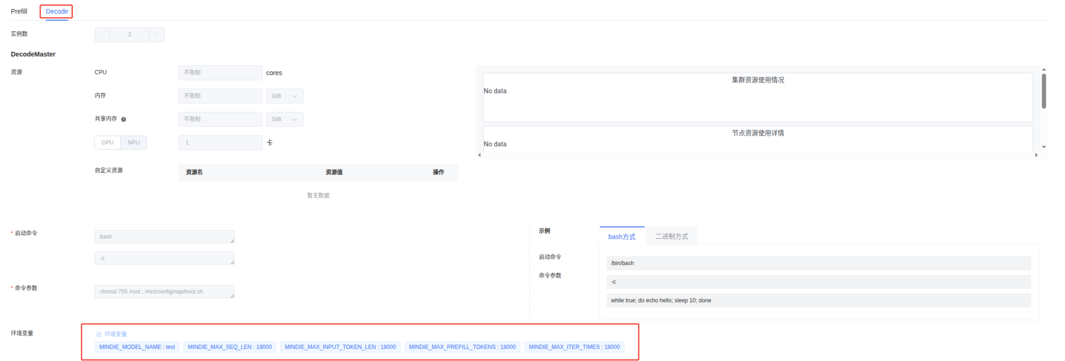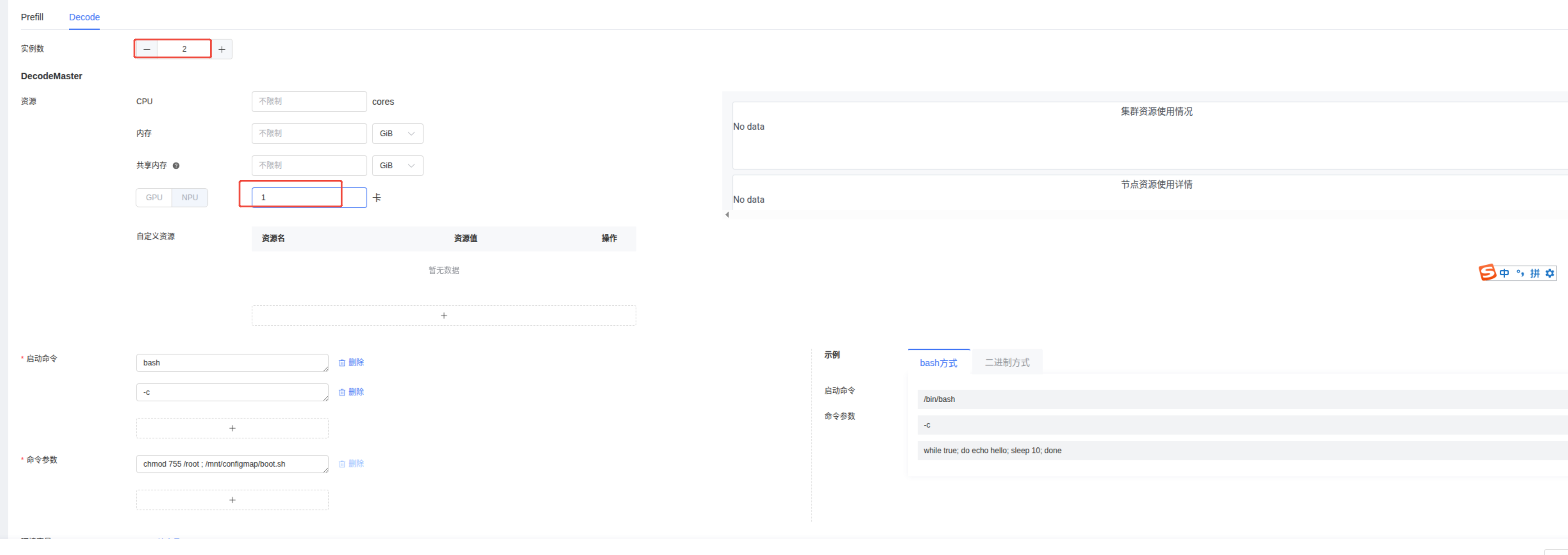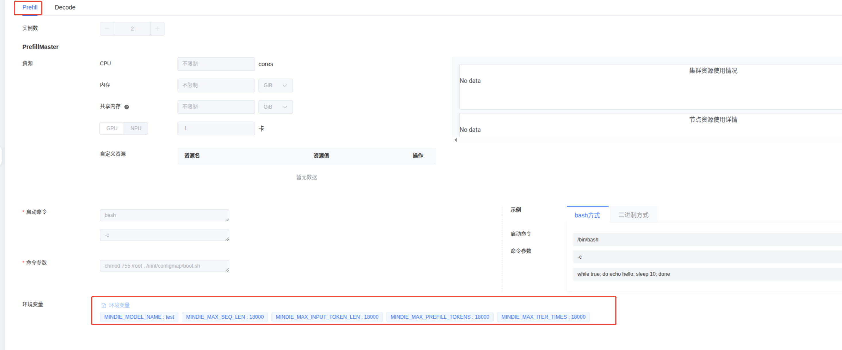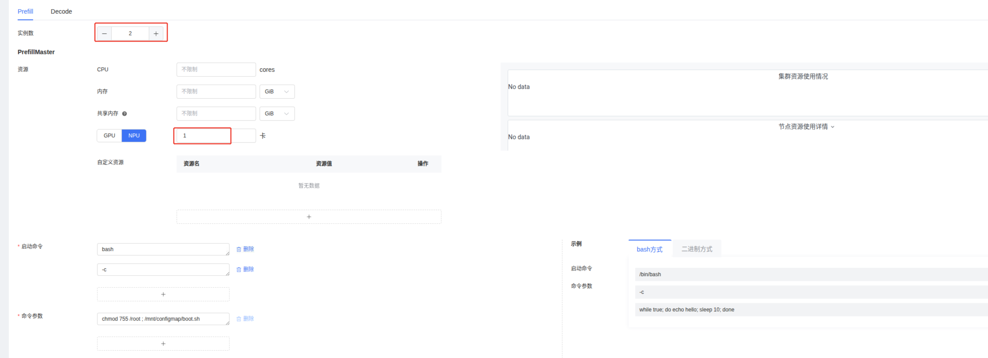 PrefillMaster 的资源菜单:CPU,内存,共享内存可以不填,NPU填:1