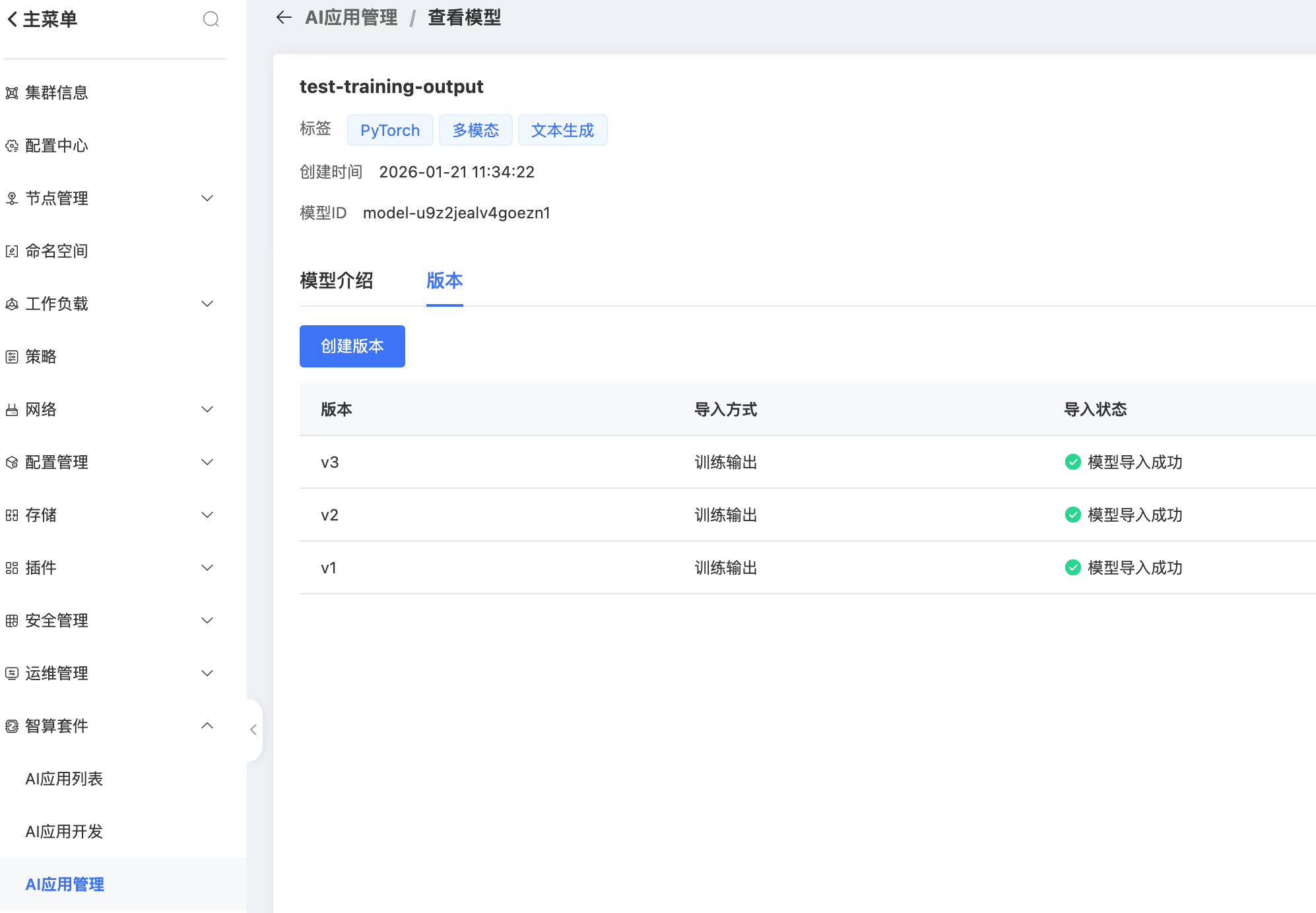 四、当训练任务正常结束后会自动将模型输出路径中的模型权重文件导出为私有模型