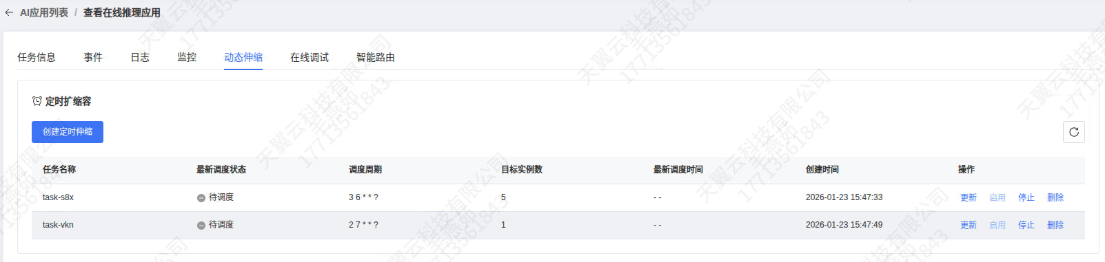 2、进入某个推理应用详细页面 ---> 【动态伸缩】页面。