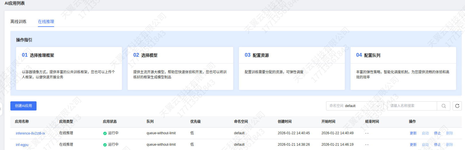 1、套件控制台 ---> AI 应用列表 ---> 在线推理。