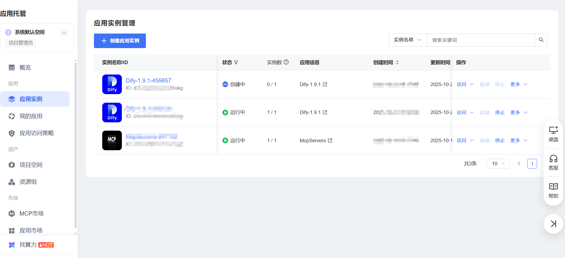 4.应用购买成功后,可在【应用】【应用实例】中,查看已购买的应用实例。