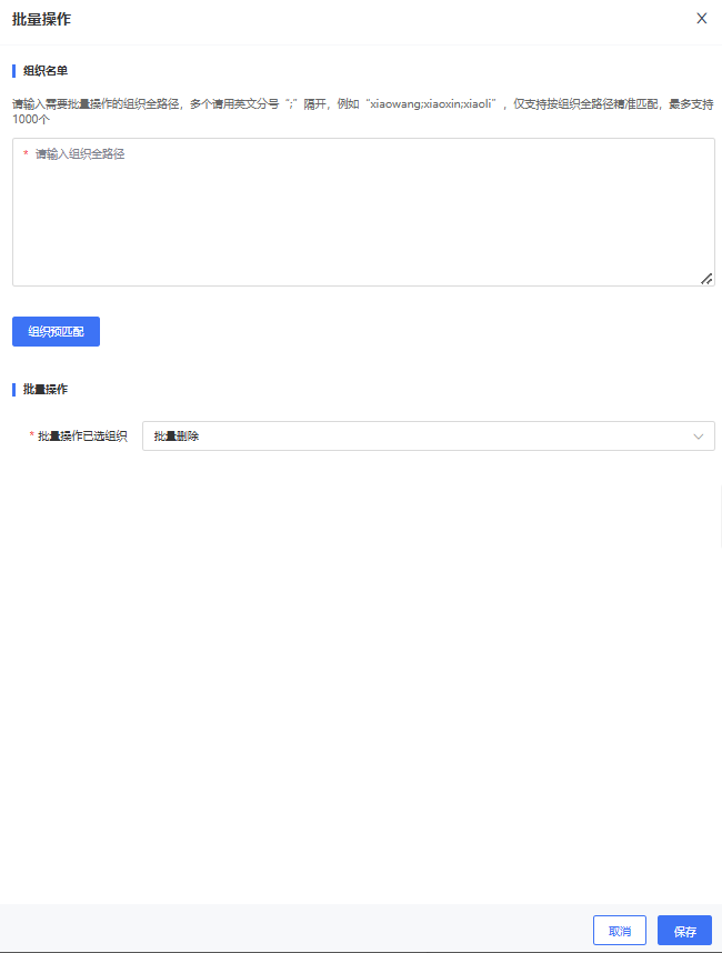 输入需要批量操作的组织全路径后,可以进行批量删除操作。