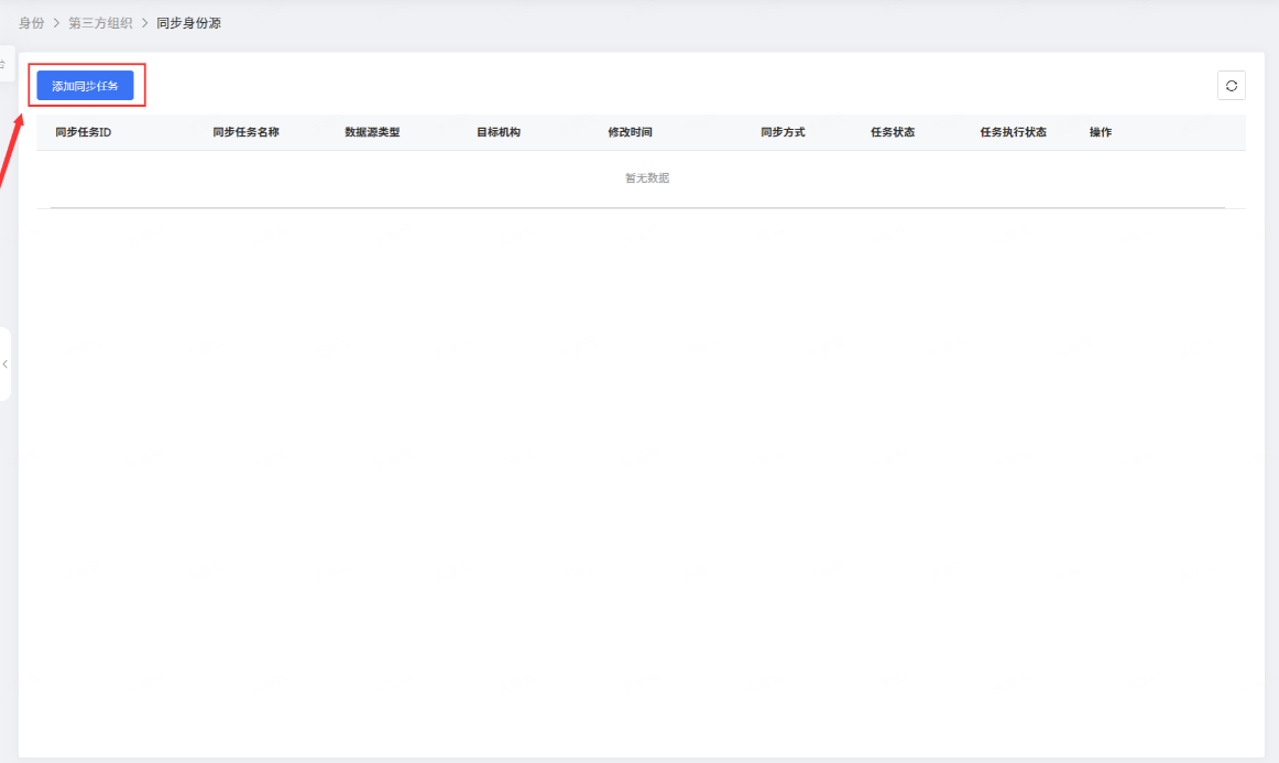 在左侧导航栏身份-第三方组织,选择同步身份源菜单。