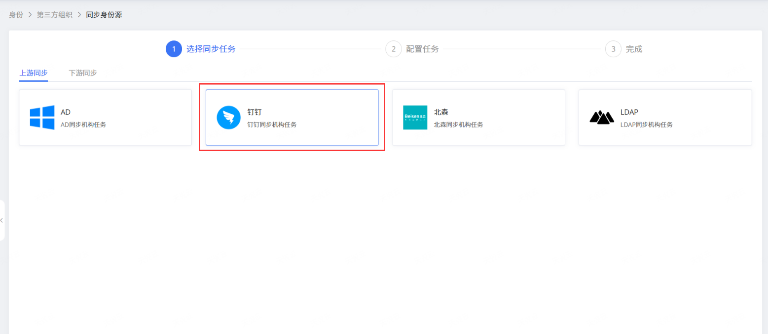 进入同步身份源列表,点击“添加同步任务”,进行钉钉身份源添加。