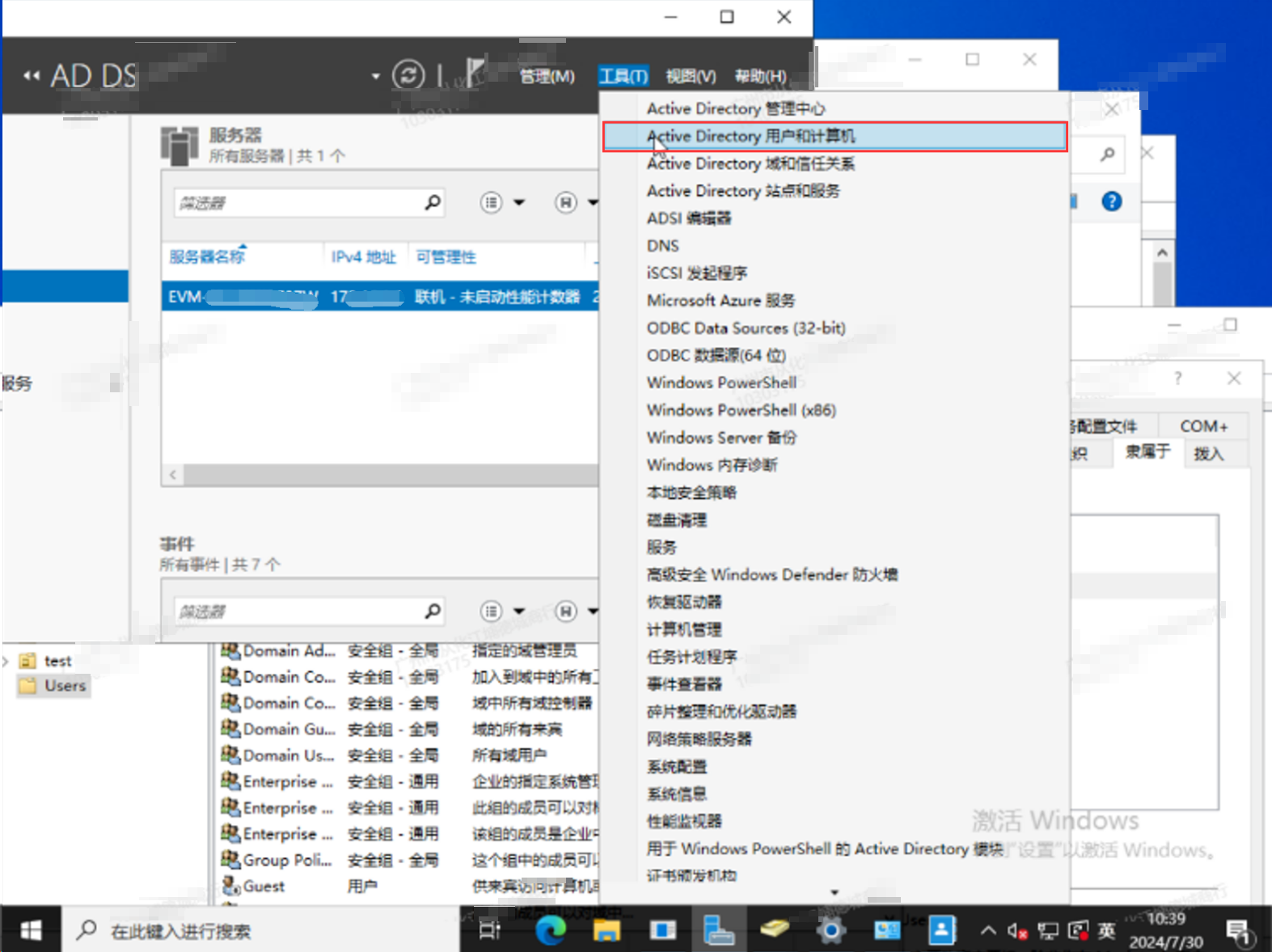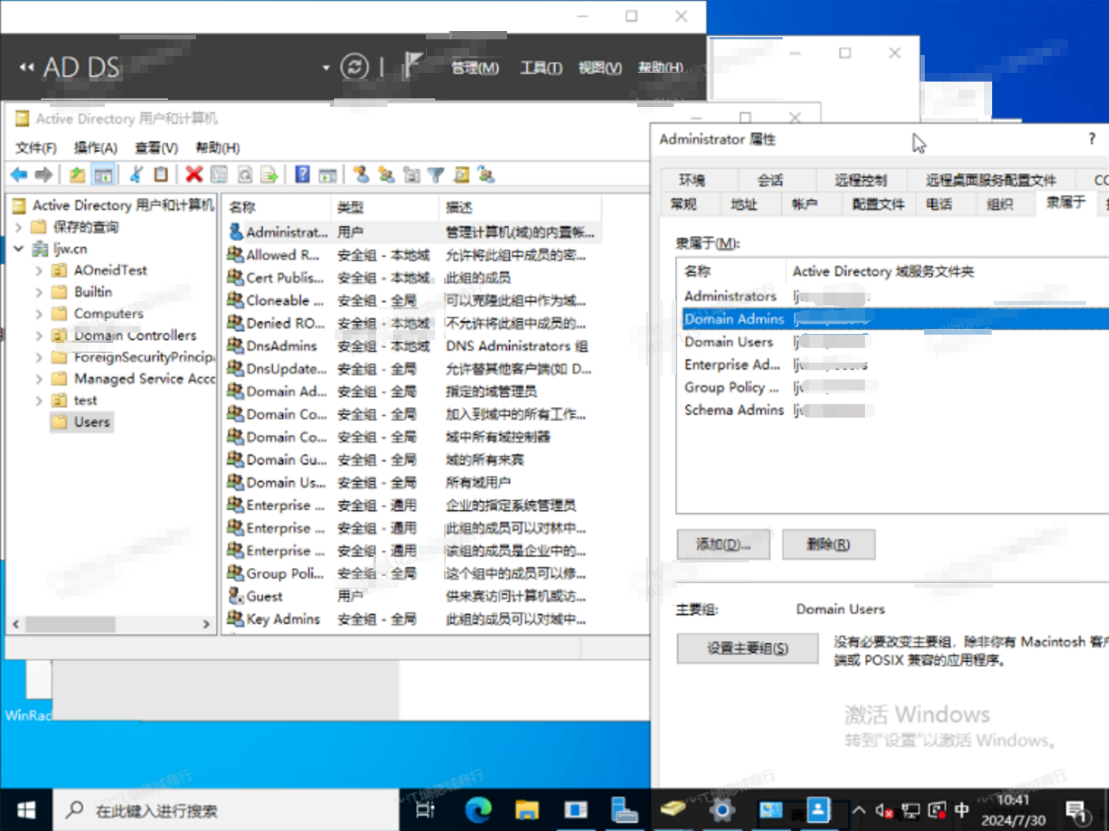 工具->Active Directory 用户和计算机->Users->对应用户属性。