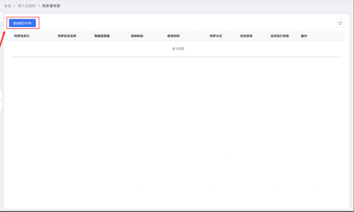 进入同步身份源列表,点击“添加同步任务”,进行AD身份源添加。