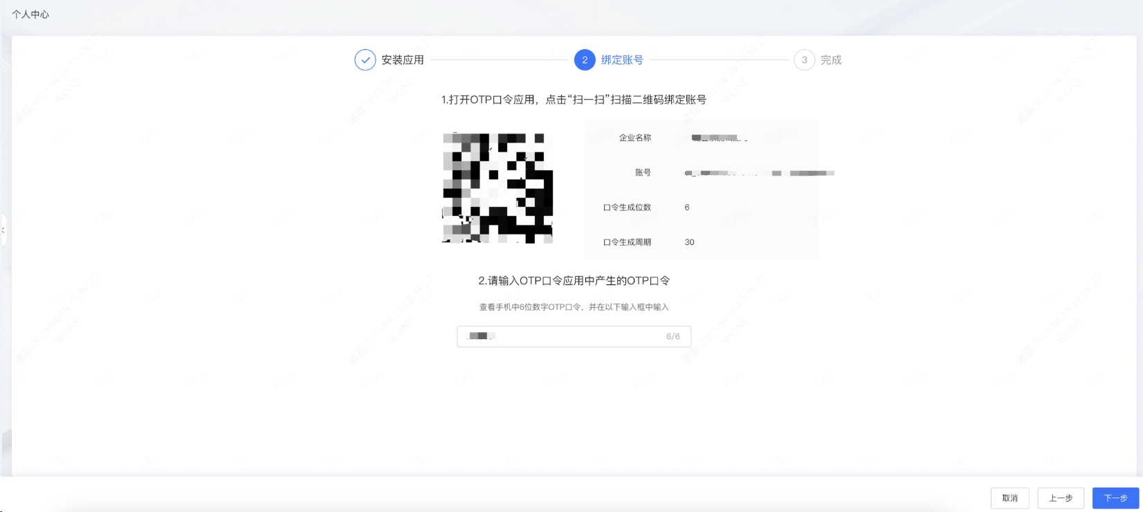 1)使用OTP App或者小程序,通过扫码的方式,绑定账号OTP口令;