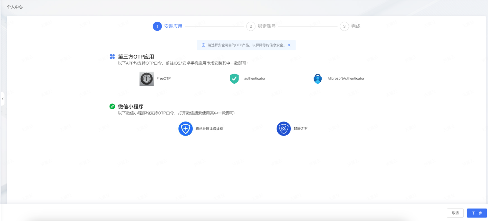 根据系统指引,完成OTP口令绑定相关操作: