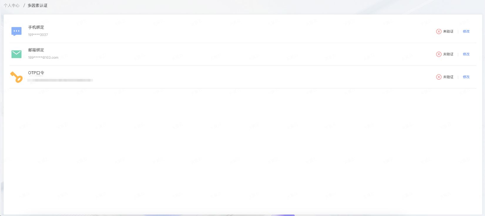 在个人中心-多因素认证页面,点击OTP口令按钮;