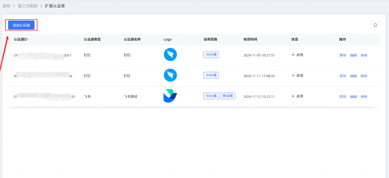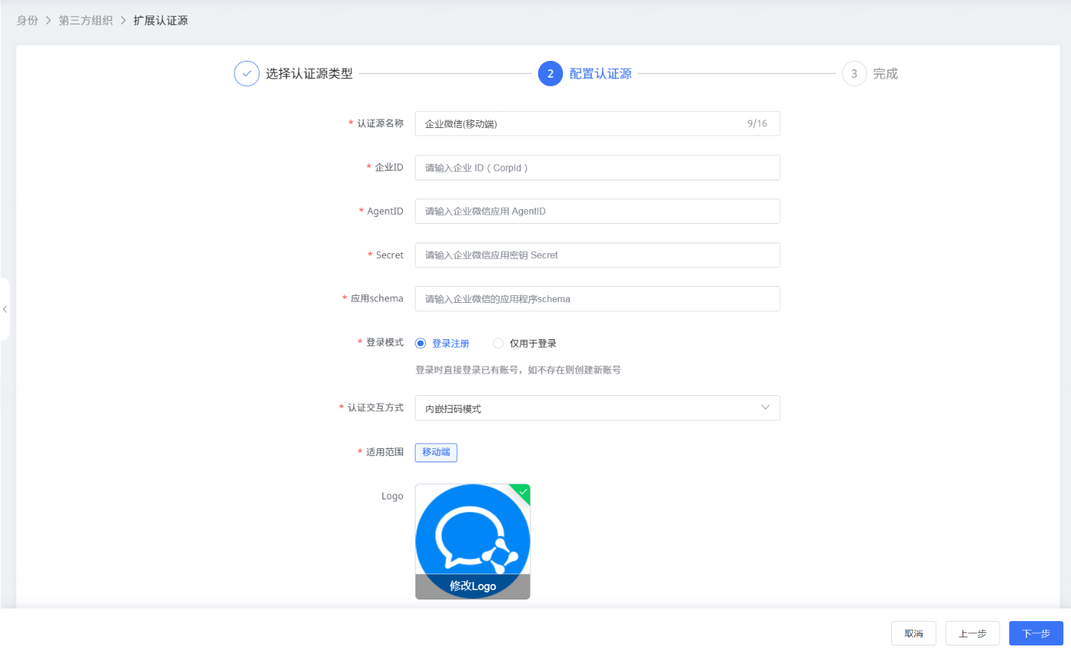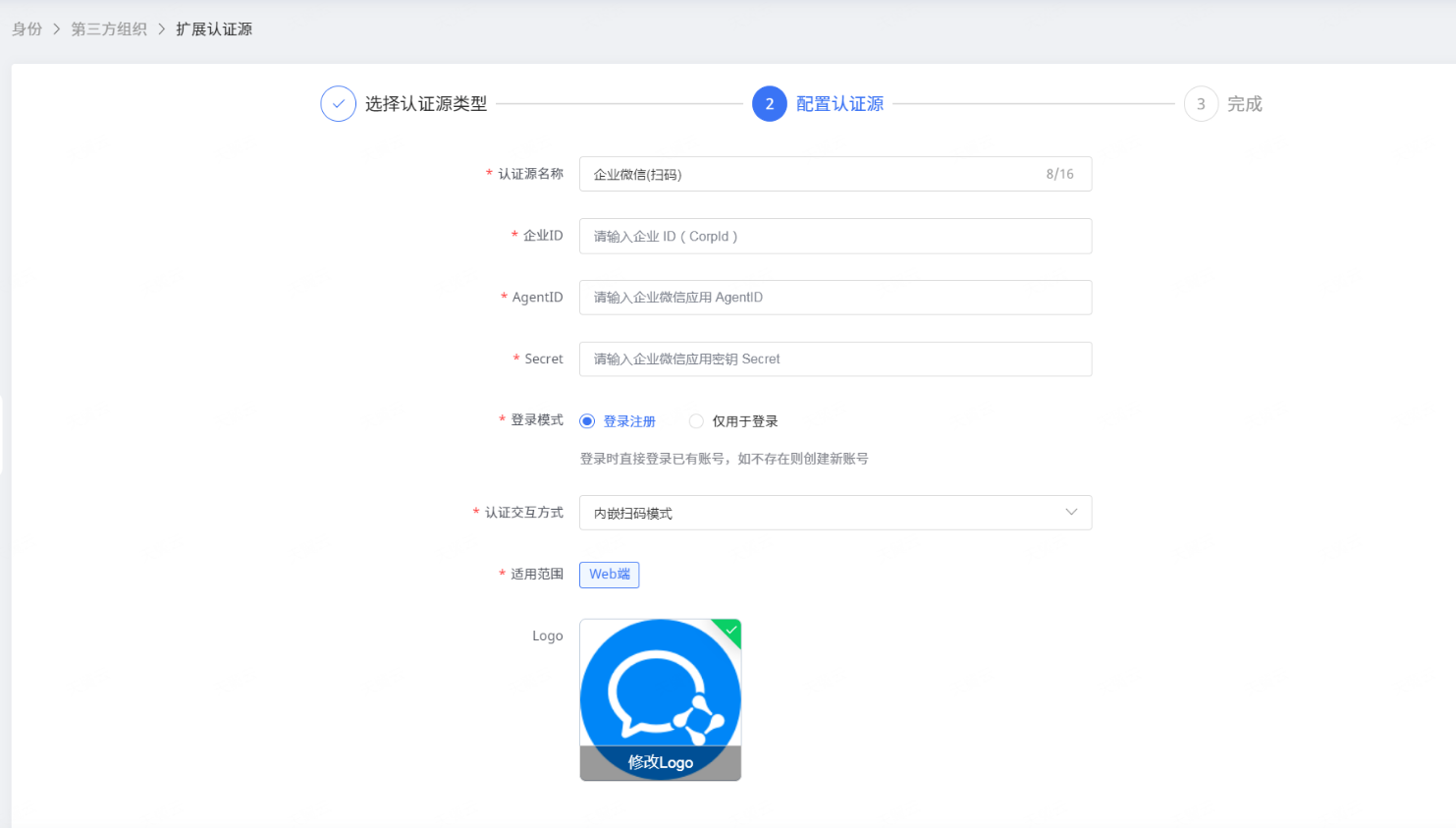 | Logo | 非必填,在认证源列表展示的Logo。 |