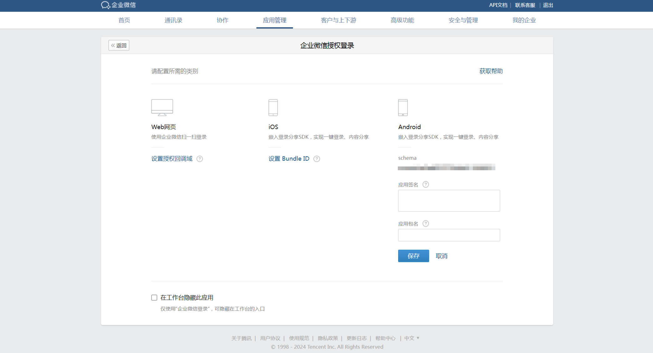 5. 设置企业微信授权登录-设置该应用签名和包名