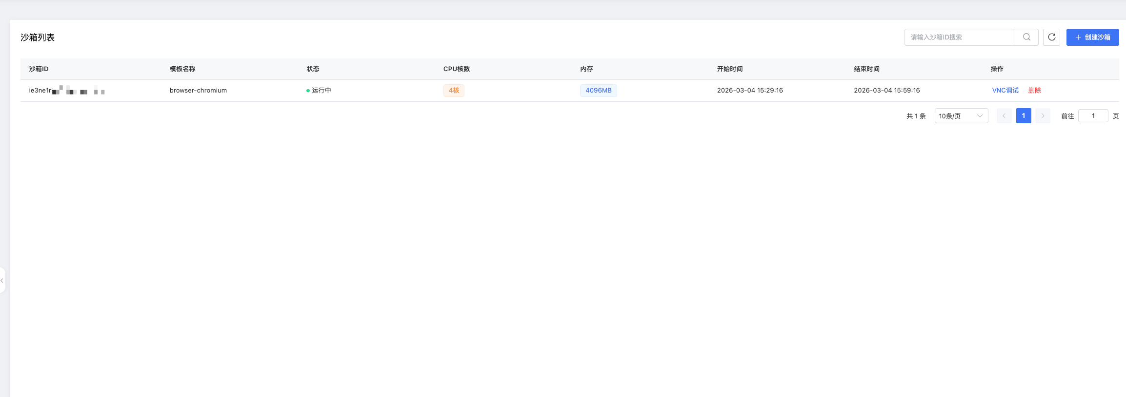 任务完成后,返回沙箱实例列表,在目标实例的操作列点击删除。