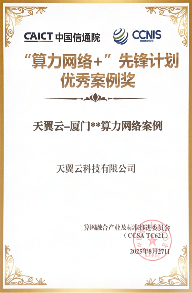 近日,由中国通信标准化协会算网融合产业及标准推进委员会(CCSA TC621)主办的“2025年算网融合产业发展大会 算力网络及SD-WAN产业发展论坛”在北京成功举办。论坛汇聚产学研用多方力量,共商算网融合发展新路径。天翼云凭借领先的技术实力与成熟的行业实践,一举斩获“算力网络+”先锋计划优秀案例与SD-WAN优秀方案两项大奖,彰显了在云网融合领域的综合竞争力。