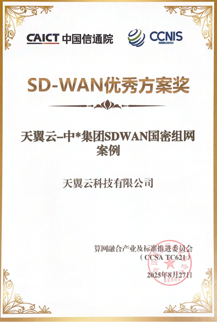 在数字化转型浪潮中,企业对安全与效率的要求日益提升。针对某大型集团希望构建覆盖全国分支的加密网络,要满足国家密评要求,并支持多业务优先级保障的需求。天翼云提供的国密SD-WAN方案,基于SM4算法实现端到端加密,通过HQoS机制保障关键业务质量,不仅满足了客户的安全要求,更实现了全国业务的高效统一组网,此次大会上该方案凭借领先的技术优势,一举斩获SD-WAN优秀方案奖。