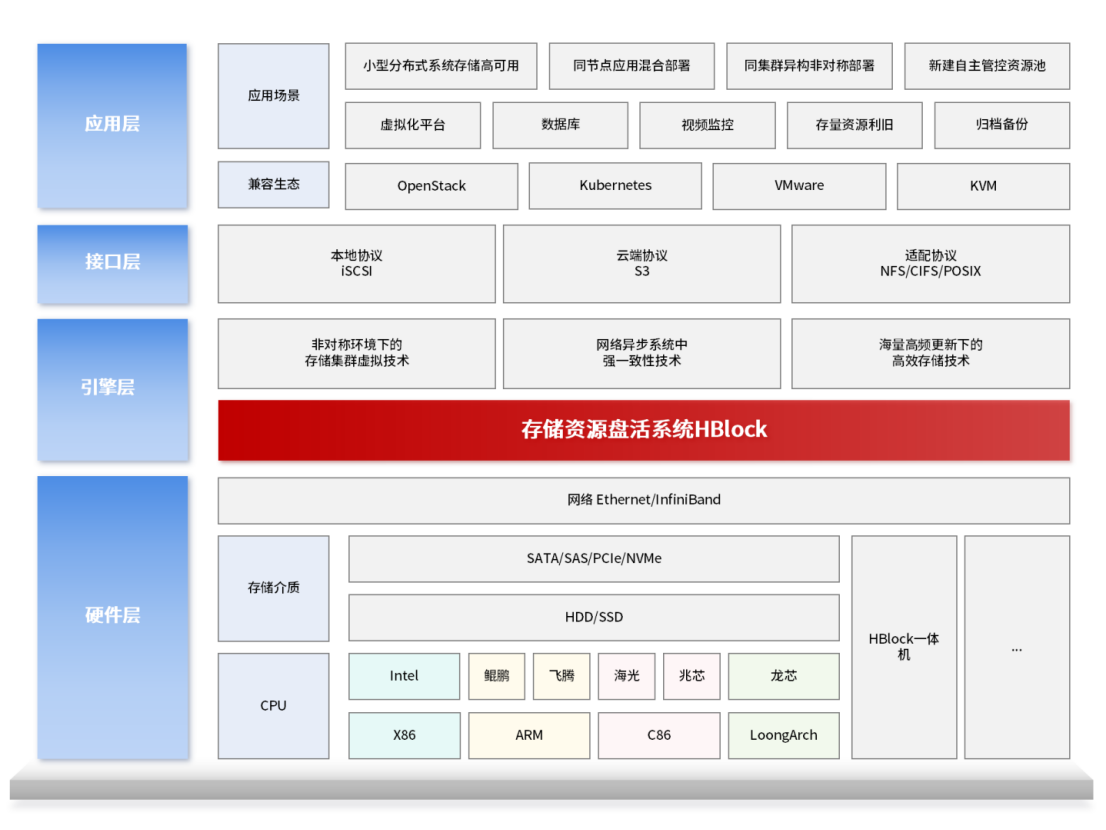 在多行业实践中,HBlock已经把“盘活存量资源”从开创性概念转化为可复用的落地路径。某头部媒体曾受冷数据存储难题困扰,通过 HBlock整合老旧服务器存储资源,显著降低成本的同时,为媒资数据提供了稳定的存储服务;重庆某征信公司、徐州某局等机构面临紧急扩容需求时,HBlock实现当天受理、当天交付,无缝对接现有业务平台;西北某地市通过该系统盘活超100台闲置服务器,未新增一块硬盘即实现可用存储容量 25% 的提升。在高性能计算领域,HBlock与并行文件系统混合部署于GPU服务器,可替代昂贵外置SAN设备,为高校、科研机构的AI训练等场景降低30%以上存储成本。