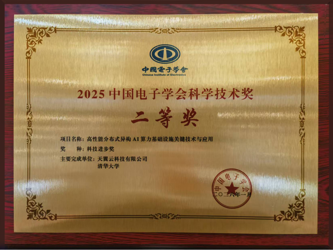 近日,中国电子学会科学技术奖励大会在武汉隆重举行,天翼云申报的“高性能分布式异构AI算力基础设施关键技术与应用”项目在会上获颁科技进步奖二等奖。该项目凭借在算力底座构建、集群管理优化、训推加速服务及算网调度等关键领域的重大技术突破,从众多参评项目中脱颖而出,赢得了行业的高度认可。