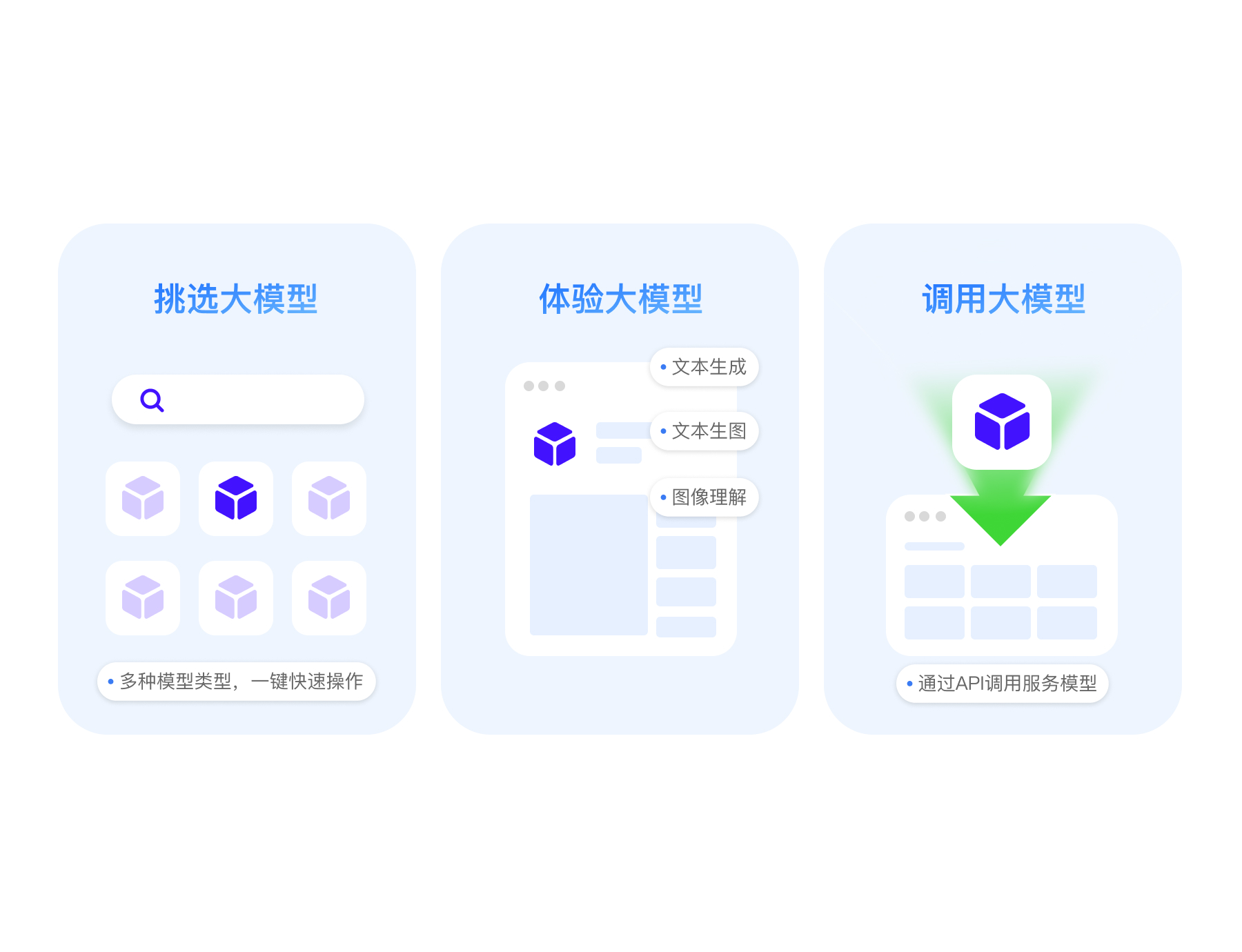 提供文本、图片、语音等多种大模型供选择,支持高性能的模型调用服务