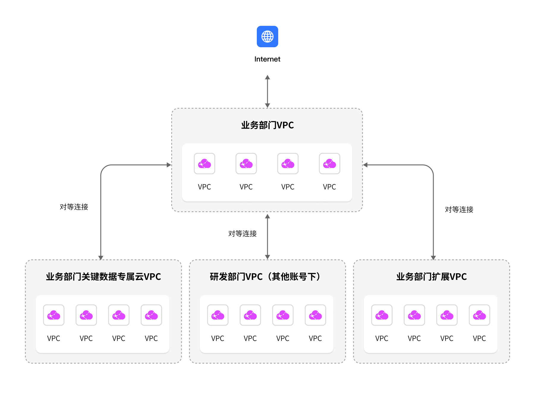 路由配置可由用户灵活定义,用户可根据业务需要按需互通部分CIDR,实现可控范围的安全访问