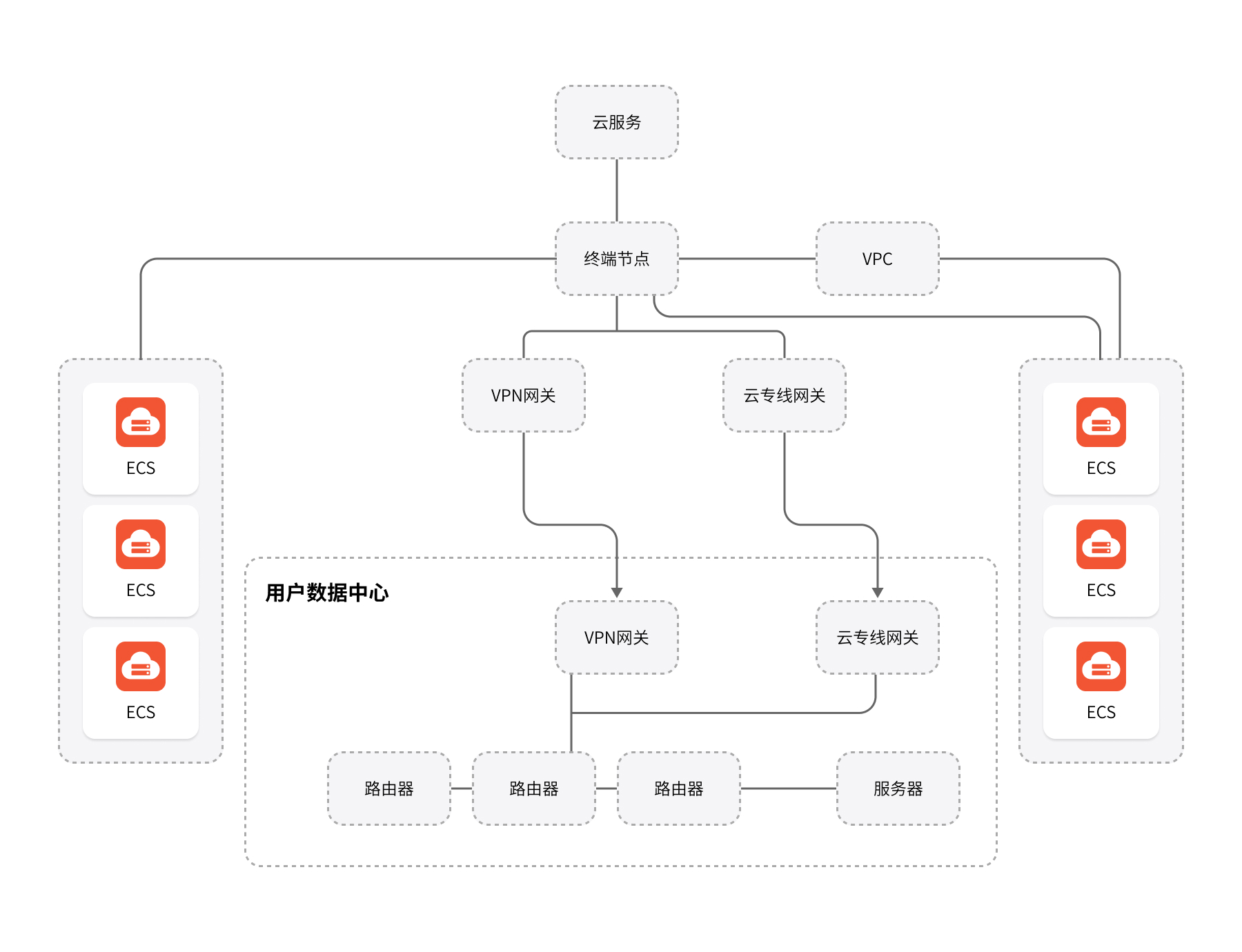 本地数据中心可以通过VPN或者云专线,利用建立的终端节点通过内网访问天翼云服务,可以提高访问效率,节约使用成本,更加便捷安全